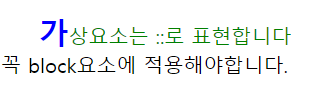 - 첫번째줄이나 첫글자와 같이 요소 일부분에 스타일을 적용할 수 있습니다.